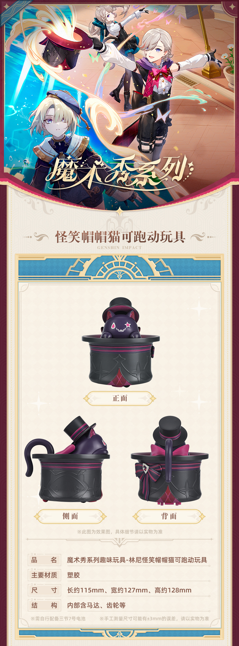 Genshin Impact Magic Show Series Lyney Hat Cat Runable Toy