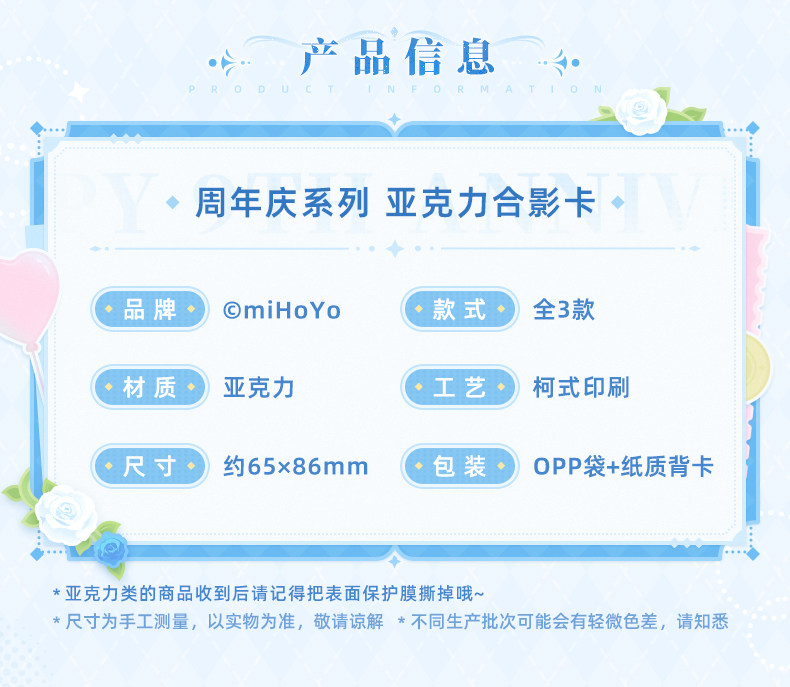 The Honkai Impact 3rd 9th Anniversary Series Acrylic Pendant is a commemorative accessory released to celebrate the 9th anniversary of Honkai Impact 3rd. Featuring clean anniversary-themed character artwork, this acrylic pendant is designed as a lightweight and stylish collectible that can be used as a keychain, bag charm, or decorative accessory.
