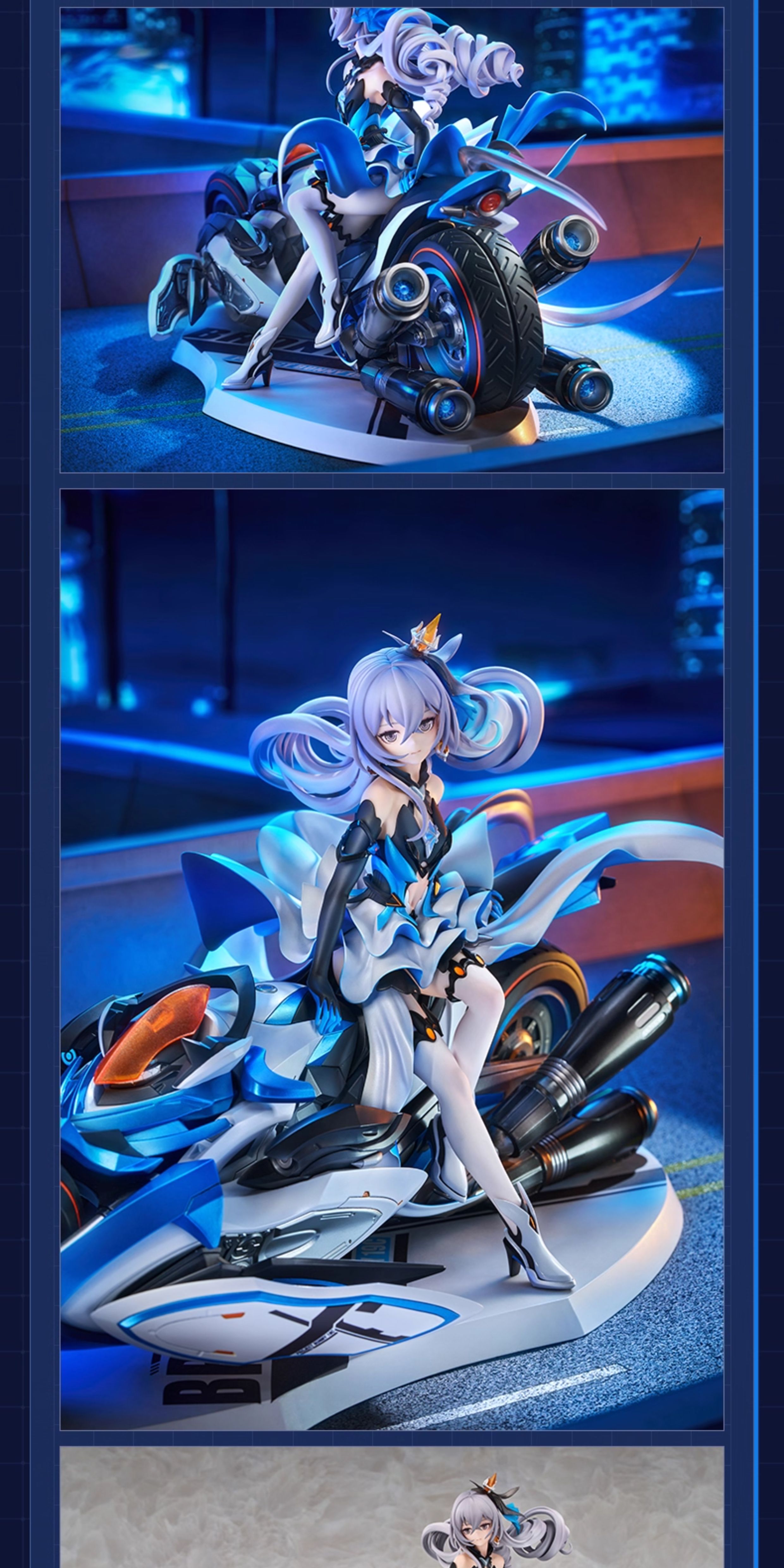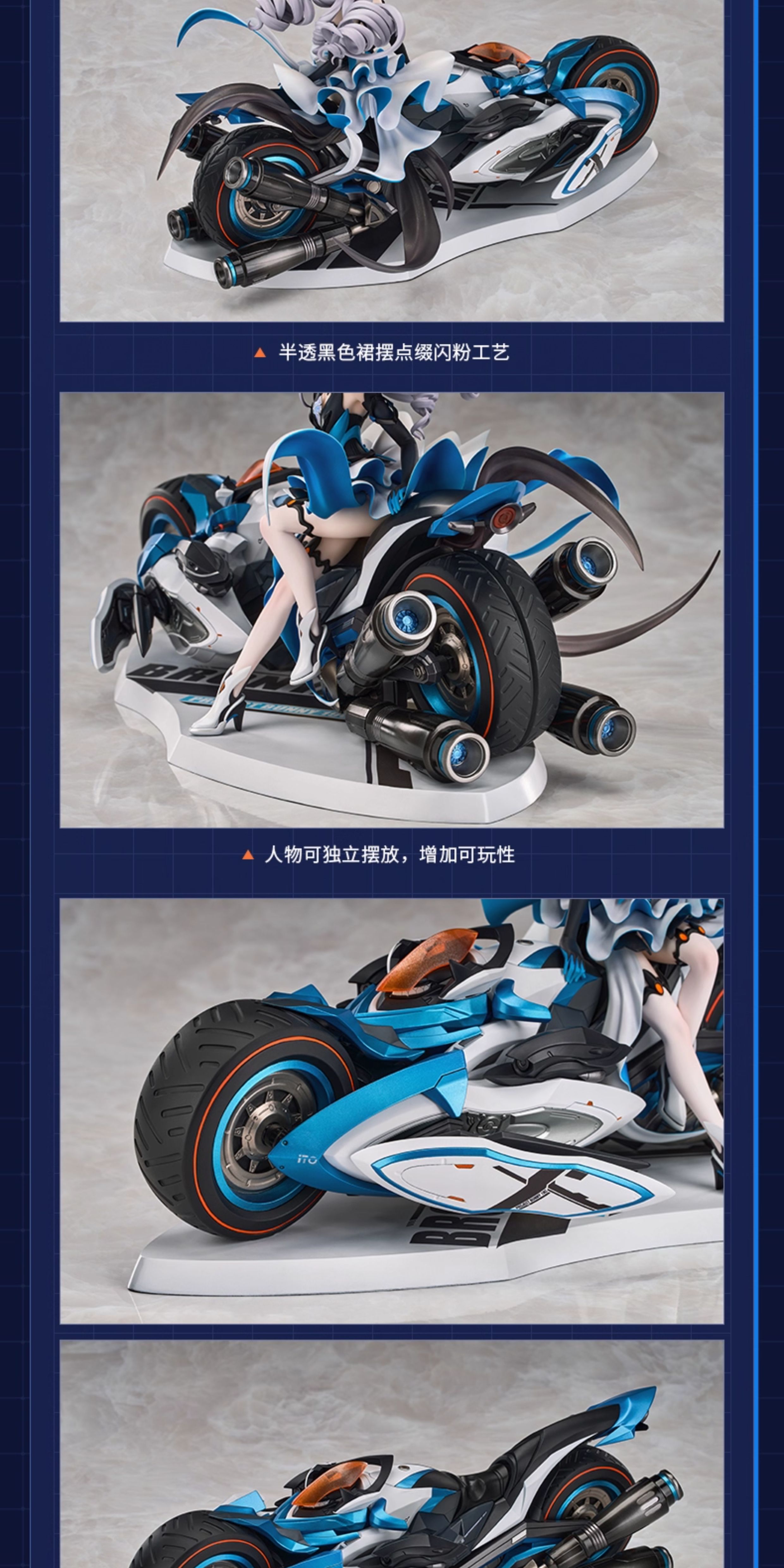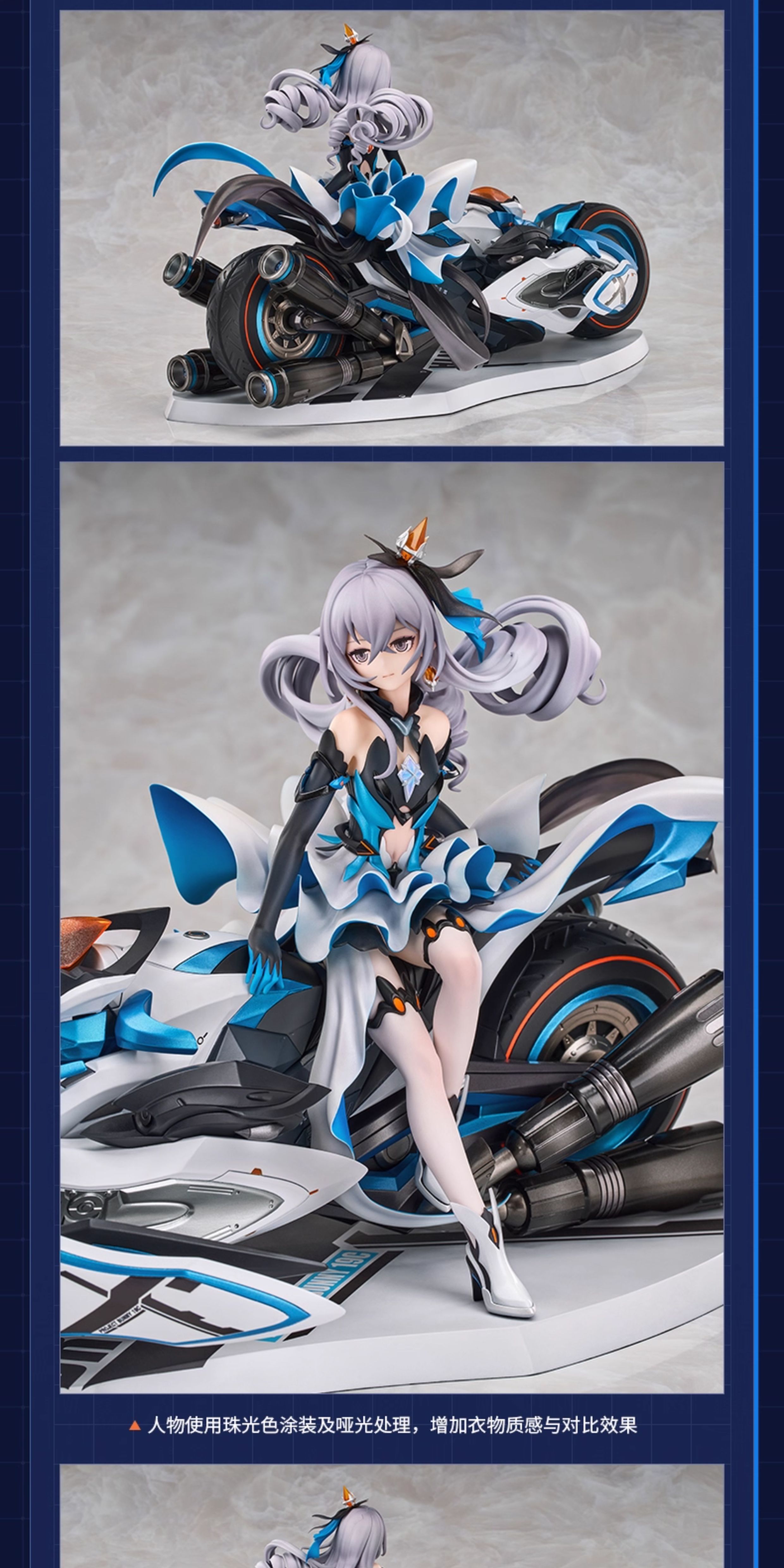 Ride into battle with the Herrscher of Reason, Bronya Zaychik — beautifully recreated in this 1/8 scale figure from Honkai Impact 3rd. This dynamic collectible captures Bronya in her iconic armor, confidently mounted on her signature mechanical bike, radiating both power and precision.