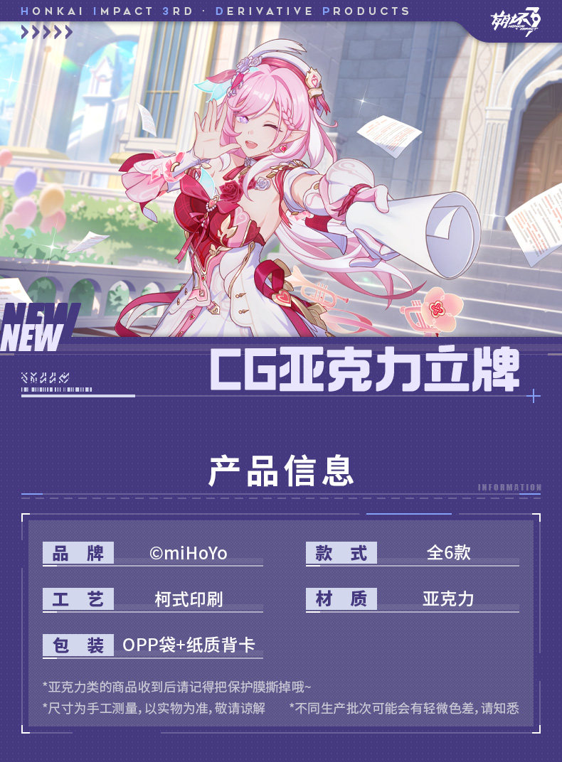 Perfect for fans of Elysia and Honkai Impact 3rd, this acrylic stand works equally well as a decorative piece or as part of a larger merchandise collection.