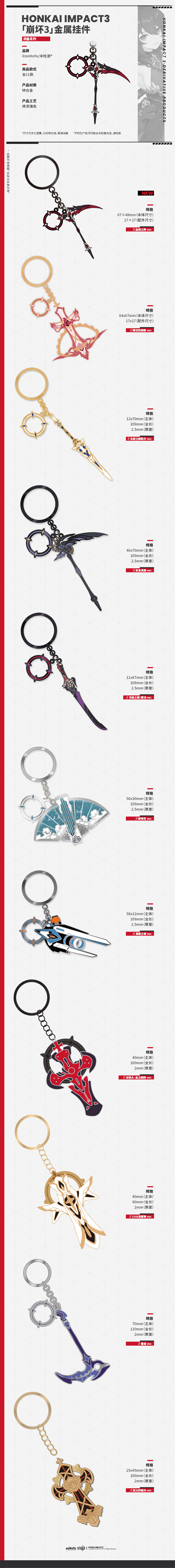 Honkai Impact 3rd Valkyrie Weapon Metal Pendant Keychain